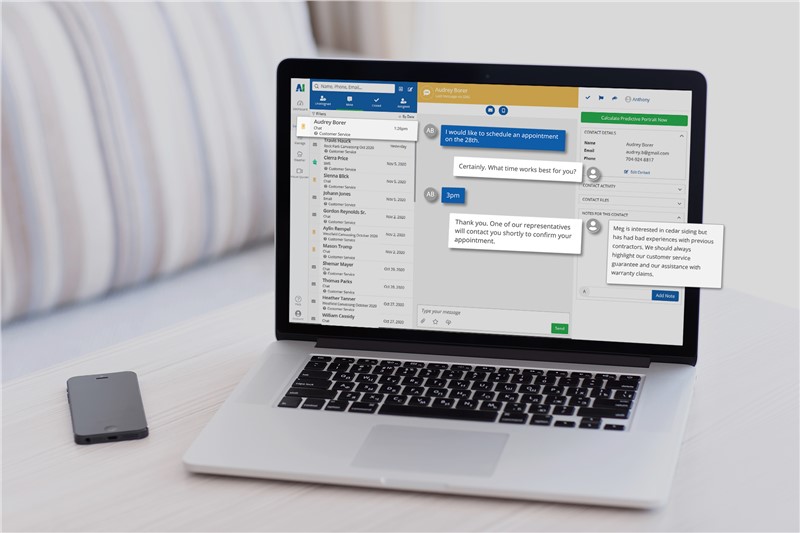 Even with automation, phone calls remain crucial for roofing and home service companies. When your AI Call Center Agent books or updates appointments, all information flows back into the same Predictive Sales AI system.