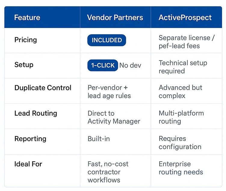 With Vendor Partners, integrations are automatic, leads flow straight into your Activity Manager, and everything is fully tagged and labeled for instant clarity. You stay focused on selling—not sorting.